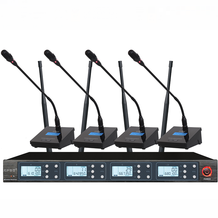 産品選用瞭(le)超指向強電容式音頭,具有極優秀的音質和頻響。次用瞭(le)鎖式牢固接插分離結構,確(què)保瞭(le)高可靠的穩定性能。獨立設計新型底座,是要求極高的高級會議工程的理想設備。頻率響應寬廣,音質清晰透明,噪音低,話筒ON/OFF超長壽命。話筒開啓時,音頭紅色工作指示燈發亮。鵝頸與底座可分開式,适用於(yú)大、中、小型會議、公衆傳播、上課、演講等場(chǎng)合。ID碼(mǎ)辨别,不容易受到外界幹(gàn)擾與影響。使用UHF640~690MHz頻段,應用PLL頻率合成鎖相環(huán)技術,頻率可調(diào),可同時使用5套,不受幹擾,。集成中央處理器CPU的總控制,配合數字液晶界面顯示,操作方便,性能出衆。採(cǎi)用多級窄帶高頻及中頻選頻濾波,充分消除幹擾信号。採(cǎi)用音頻壓縮擴展技術,噪音大大減少,動态範圍加大。設有回輸嘯叫抑制減弱功能,能有效減少回輸嘯叫。接收機採(cǎi)用多級高頻放大,具有極高的靈敏度。多重噪音監測(cè)電路,特設單音鎖定TONE-LOCKED系統,使之具有無與倫比的抗幹(gàn)擾特性。空闊(kuò)最大使用距離100米以上,理想空間使用距離50米。