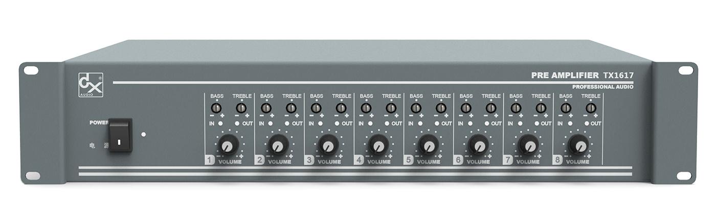 每路音調調節範圍(相對1KHz頻率):低音(100Hz)±10dB;高音(10KHz)±10dB